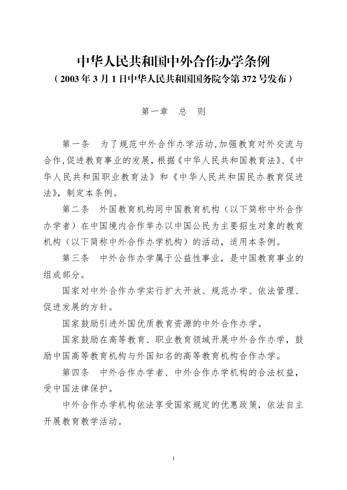 中華人民共和國中外合作辦學(xué)條例