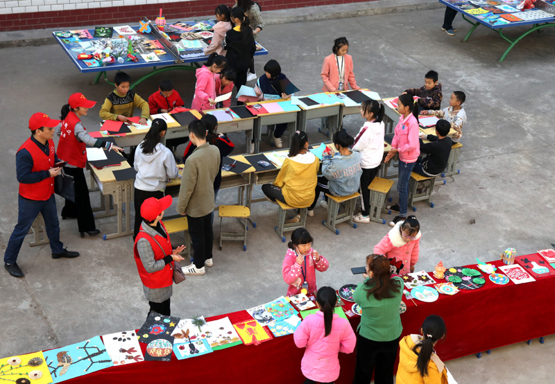 我校義務(wù)支教志愿者為留守兒童上手工制作課。