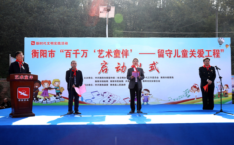 衡陽(yáng)市“百千萬(wàn)‘藝術(shù)童伴’——留守兒童關(guān)愛工程”啟動(dòng)儀式在衡南縣松江聯(lián)合學(xué)校長(zhǎng)嶺校區(qū)舉行。