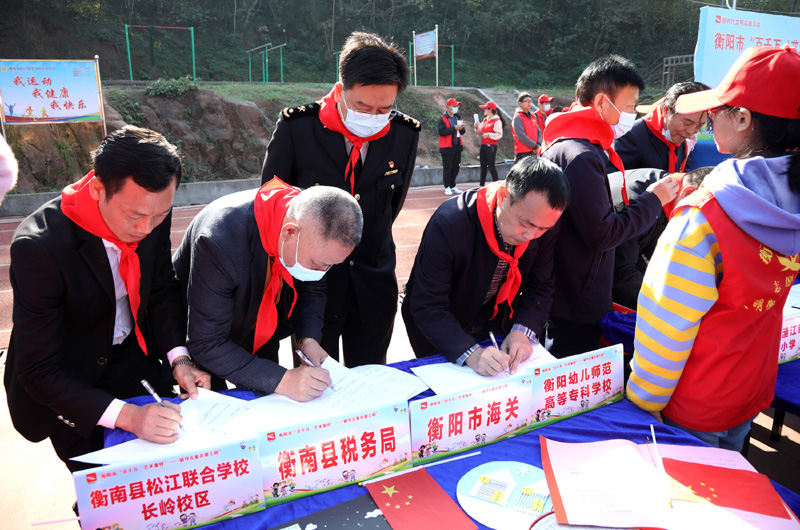 學(xué)校負(fù)責(zé)人李仲輝和幫扶文明單位衡陽(yáng)市海關(guān)、衡南縣稅務(wù)局與衡南縣松江聯(lián)合學(xué)校長(zhǎng)嶺校區(qū)簽訂支教幫扶協(xié)議。