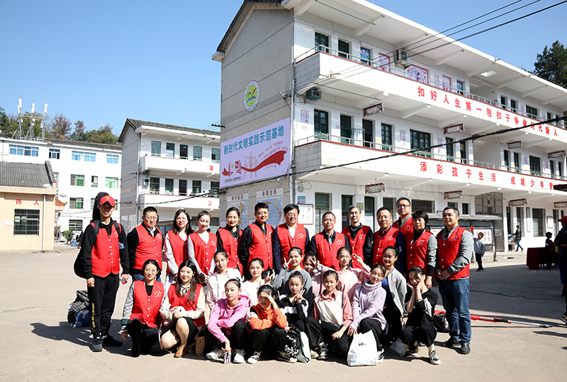衡陽(yáng)幼高?!昂怅?yáng)群眾”義務(wù)支教志愿服務(wù)隊(duì)師生在衡南縣松江聯(lián)合學(xué)校長(zhǎng)嶺校區(qū)合影。