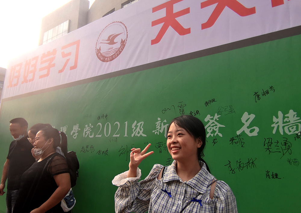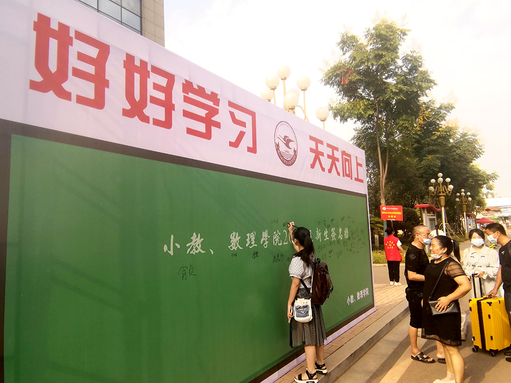 不僅如此,小學(xué)教育學(xué)院還準備好簽字筆,每位新生都在簽名墻上留下自己的名字,為新生報到增添了儀式感。