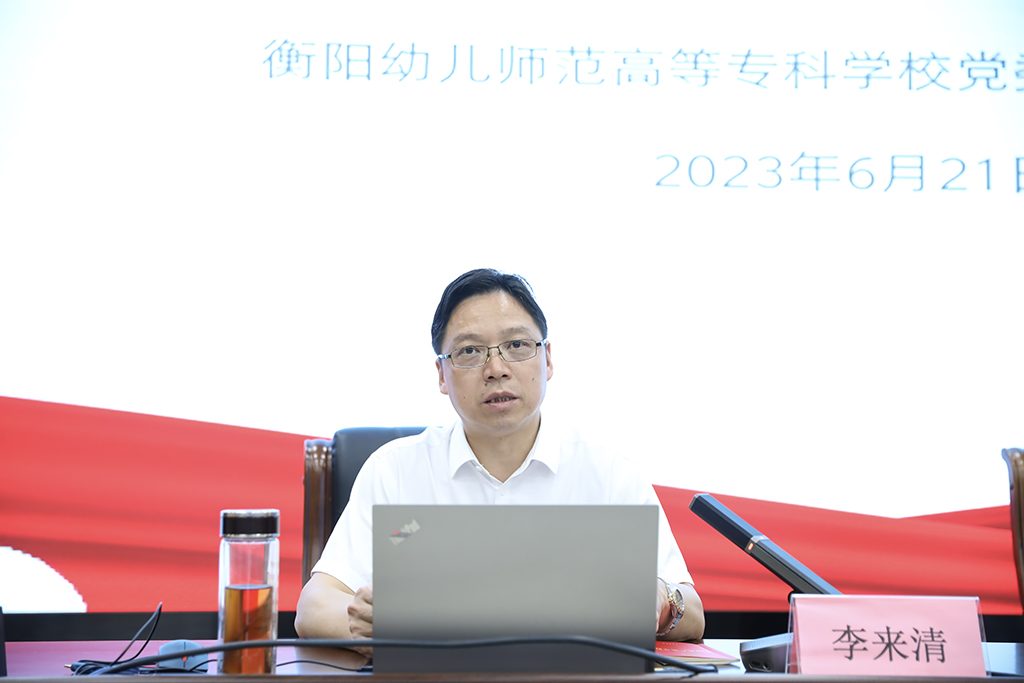 為深入開(kāi)展學(xué)習(xí)貫徹習(xí)近平新時(shí)代中國(guó)特色社會(huì)主義思想主題教育,牢牢把握“學(xué)思想、強(qiáng)黨性、重實(shí)踐、建新功”總要求,努力在以學(xué)鑄魂、以學(xué)增智、以學(xué)正風(fēng)、以學(xué)促干方面取得實(shí)實(shí)在在的成效,6月21日上午,衡陽(yáng)幼兒師范高等??茖W(xué)校黨委書(shū)記李來(lái)清在學(xué)校雁鳴大講堂給全校黨員上了一堂以“全面學(xué)習(xí)黨章 爭(zhēng)做踐行黨章的模范”為題的專題黨課。