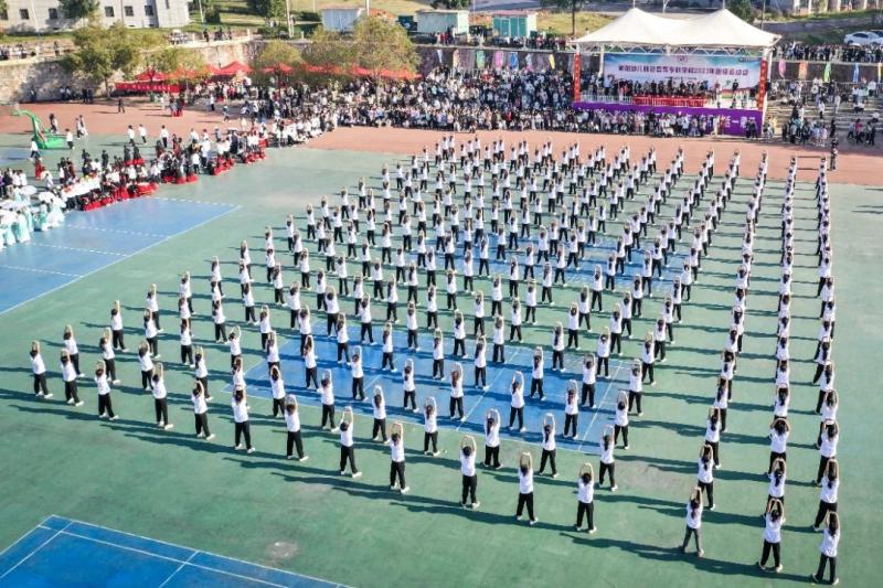 開幕式后,大型文體表演閃亮登場。團體操表演隊員的每一次跳躍都盡顯衡陽幼兒師專學(xué)子年輕的活力與張揚。學(xué)前系獻上中國舞《驍》,舞蹈結(jié)合爵士和中國舞,表演現(xiàn)場氣勢恢宏,通過舞蹈表達對祖國大好山河的贊美,對中華兒女保家衛(wèi)國的贊揚。藝術(shù)系民間舞《雨澗春行圖》以江南山水為題,融詩意入舞,油紙傘緩緩打開,猶如展開了一幅靈動生長的畫卷,畫上展現(xiàn)出生機和希望。春雨稠,心意濃,這是青春年華無限的美好?!皟墒滞刑炖砣梗笥议_弓似射雕……”小學(xué)教育系、數(shù)學(xué)與現(xiàn)代信息技術(shù)系和現(xiàn)代服務(wù)與管理系三百名師生共同表演中國古代氣功功法---八段錦,一招一式動作整齊劃一、動靜相宜、剛?cè)岵?,激勵全校師生開拓進取、團結(jié)合作、自強不息,奮勇圖強。
