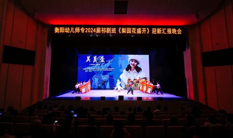 “祁劇梨園花盛開”。12月26日,衡陽幼兒師范高等??茖W校2024屆祁劇班畢業(yè)迎新匯報演出正式開演。