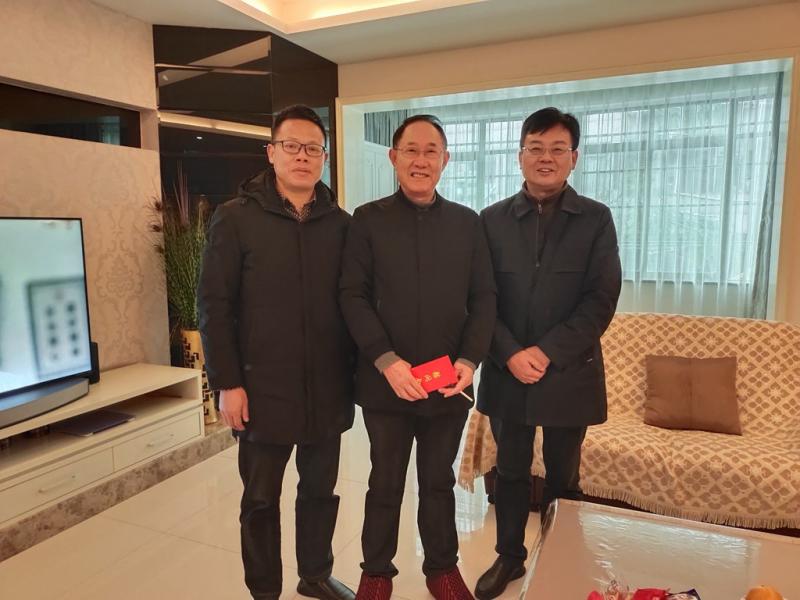 校領(lǐng)導(dǎo)蕭烽,黨委委員、紀委書記劉聲久到退休老領(lǐng)導(dǎo)仇純富家中走訪慰問
