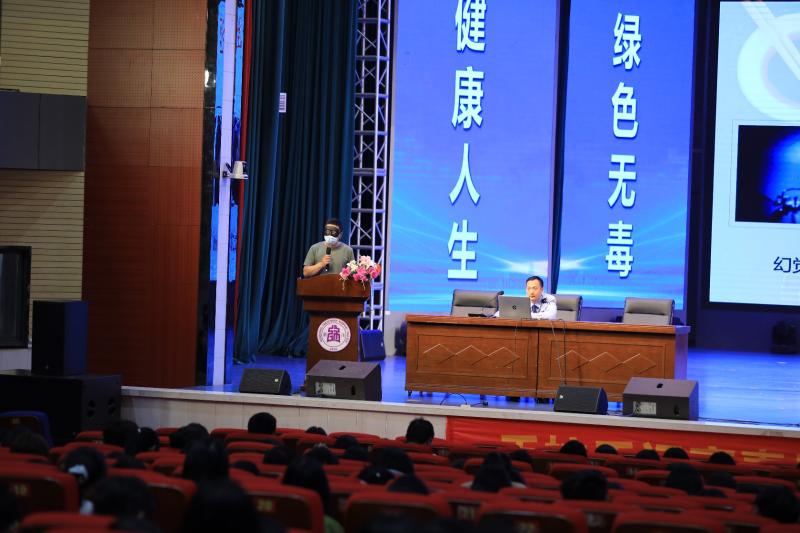 雁峰區(qū)禁毒辦、禁毒協(xié)會(huì)在學(xué)校大禮堂舉辦了“綠色無毒 健康人生 全民禁毒”的禁毒知識(shí)展、禁毒簽名活動(dòng)和禁毒互動(dòng)游戲,吸引了廣大師生積極參與。接著,戒毒成功的典型給學(xué)生講述了自己涉毒、戒毒的經(jīng)歷,以現(xiàn)身說法的方式告知青年學(xué)生毒品的巨大危害,呼吁青年學(xué)生增強(qiáng)禁毒意識(shí),遠(yuǎn)離毒品,健康生活。衡陽市強(qiáng)制隔離戒毒所教育科科長、一級(jí)警長馬翔給學(xué)生作了禁毒專題講座,詳細(xì)介紹了新型毒品的種類、危害,并以吸毒案例分析對(duì)學(xué)生進(jìn)行宣傳教育。