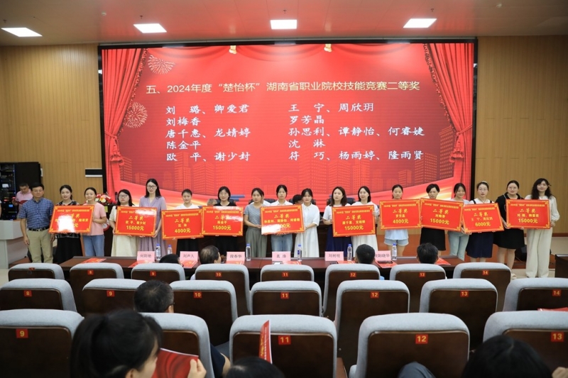 鄧昌大宣讀《關(guān)于表彰2023-2024學(xué)年教育教學(xué)科研成果的決定》。大會(huì)表彰了袁文芳等師生所取得的224項(xiàng)教育教學(xué)科研成果。校領(lǐng)導(dǎo)對(duì)40名獲獎(jiǎng)教師代表和33名獲獎(jiǎng)學(xué)生代表進(jìn)行了頒獎(jiǎng)。