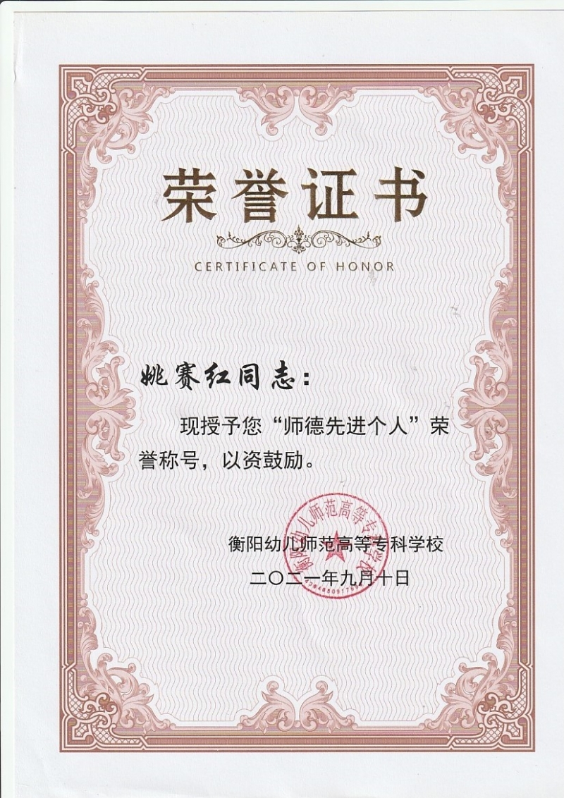 在不久前結(jié)束的2024 年湖南省“圓夢工程——關(guān)愛農(nóng)村留守兒童”示范活動中,衡陽幼兒師范高等??茖W校舞蹈專業(yè)教師姚賽紅被評為2023 年度衡陽市“藝術(shù)童伴”留守兒童關(guān)愛工程優(yōu)秀“衡陽群眾”支教老師。這份榮譽既是對姚老師的鼓勵,更是對其常年支教工作的肯定。