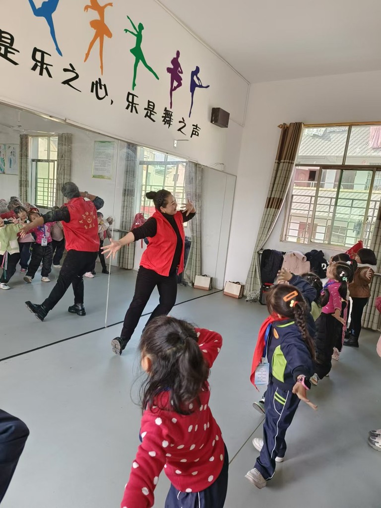 ???“結(jié)對學校缺什么,我們就補什么?!弊鳛橐幻h員教師,姚老師時刻牢記學校黨委書記李來清對支教老師們的要求。在長期的支教工作中,不管是一線課堂教學,還是牽頭教研室工作,姚老師潛心摸索出了一套適合鄉(xiāng)村小學美育的幫扶形式,并取得了很好的實踐效果。為“藝術(shù)童伴”支教工作積累了寶貴的經(jīng)驗模式,如通過思政引領(lǐng),采用藝術(shù)專業(yè)教師+大學生社團文藝骨干的方式配備美育支教團隊;線上線下,與幫扶學校教師結(jié)對,培養(yǎng)鄉(xiāng)村美育力量;探索“走班制”教學模式,開發(fā)本土藝術(shù)特色課,將優(yōu)秀傳統(tǒng)文化融入到美育課程中等等。在硫市中心小學,姚老師結(jié)對培養(yǎng)了該校寧瑾老師為兼職藝術(shù)骨干教師,并帶領(lǐng)其加入湖南省基礎(chǔ)教育課題研究小組。她還指導小學老師創(chuàng)編難度適宜的作品,用歡快的音樂將啦啦操和韻律舞結(jié)合起來,篩選培養(yǎng)領(lǐng)跳學生,為其他同學做榜樣。利用大課間的時間進行普及,爭取形成常規(guī)狀態(tài)?,F(xiàn)在,伴隨著歡樂的音樂,學生們的笑容變得更加燦爛。