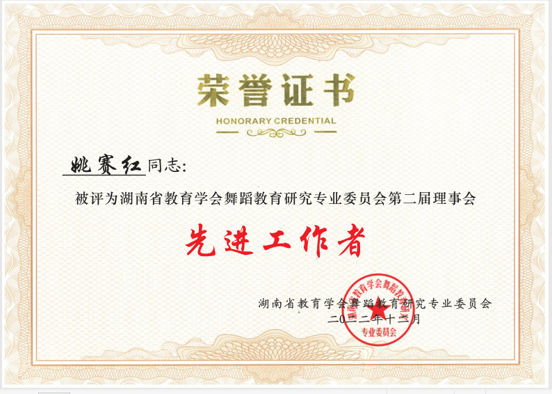 ????1983年出生的姚賽紅,衡陽幼兒師范高等專科學校音樂與舞蹈系舞蹈專業(yè)教師,原小學教育系藝術(shù)教研室主任。中共黨員,研究生學歷,藝術(shù)學副教授。曾于2018—2023年,連續(xù)六年被聘為市級“骨干教師”。曾獲評“師德先進個人”、“學生最喜愛的老師”、“教育教學名師”、湖南省教育學會舞蹈教育研究專業(yè)委員會“先進工作者”等。