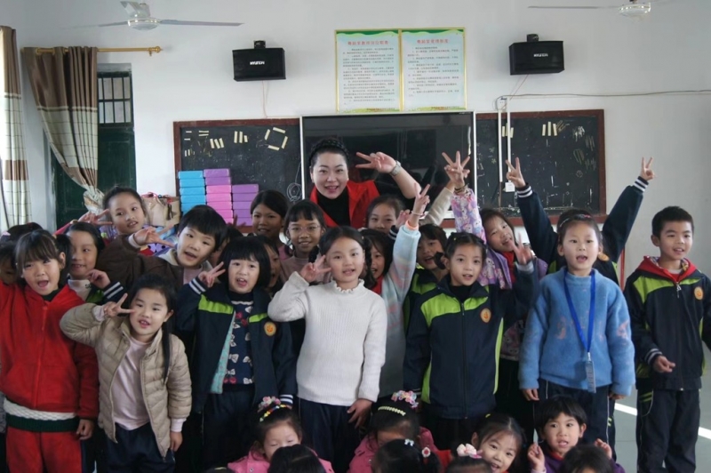 ????自衡陽市2020年發(fā)起“藝術(shù)童伴”留守兒童關(guān)愛工程,她成為“圓夢工程”的先行者。作為衡陽市第一批參與藝術(shù)同伴的支教老師,全程參與了第一個三年計劃,對口支教常寧市洋泉鎮(zhèn)同心村杉樹完小。2023年,第二個三年計劃的開始之年,姚老師又繼續(xù)帶領(lǐng)藝術(shù)教研室團隊支教衡南縣硫市中心小學至今。作為支教團隊負責人,除了完成自己的學科支教,還要根據(jù)支教小學需求調(diào)整藝術(shù)課程師資,帶領(lǐng)團隊因地制宜開展專業(yè)課程教研。
