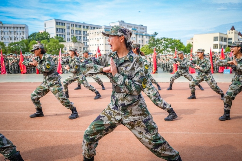 緊接著,承訓(xùn)教官們帶來精彩的戰(zhàn)術(shù)、隊列、軍體拳、刺殺操表演,展現(xiàn)軍人風(fēng)采,為同學(xué)們樹立標(biāo)桿,贏得熱烈掌聲。