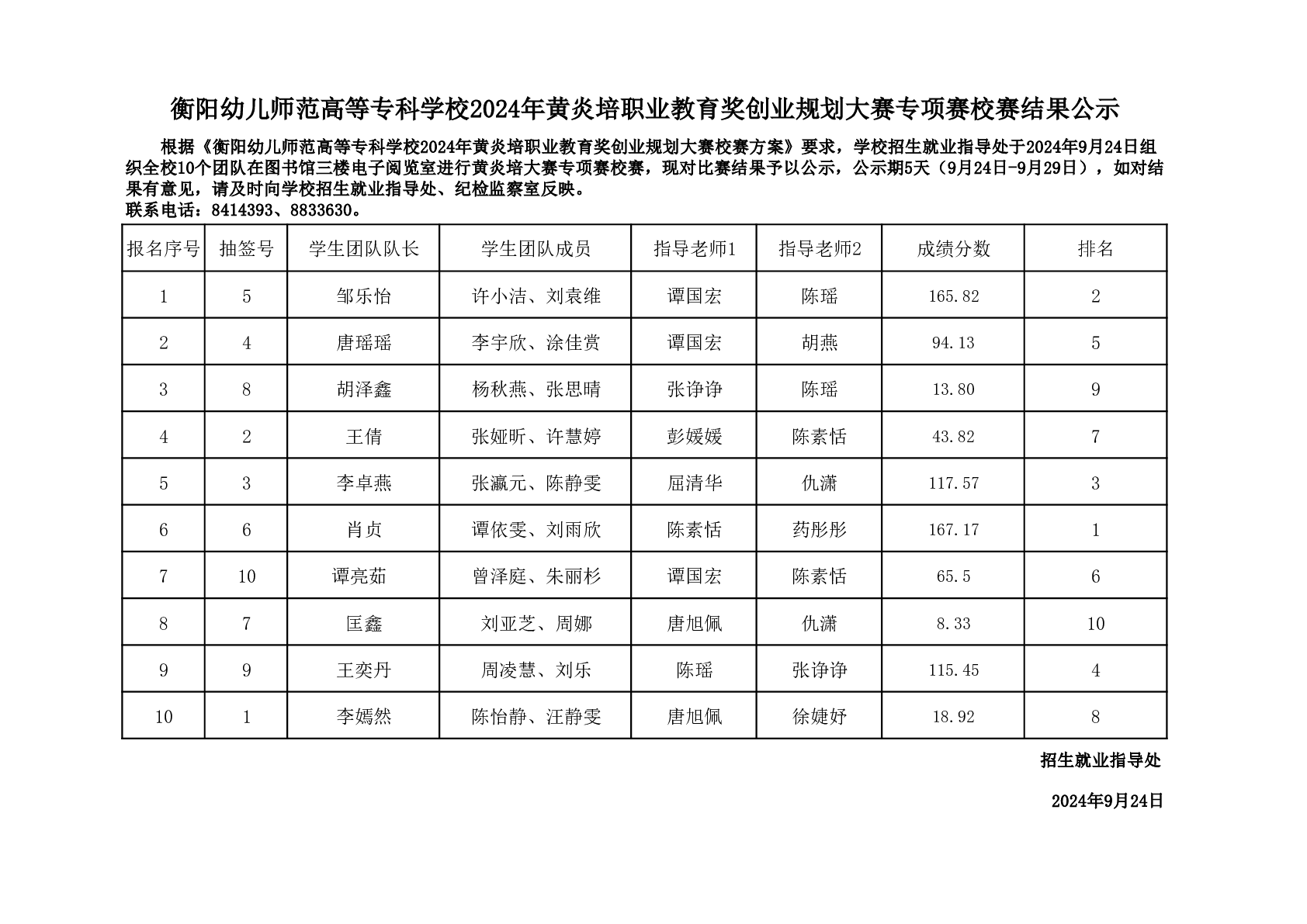 衡陽(yáng)幼兒師范高等??茖W(xué)校2024年黃炎培大賽專項(xiàng)賽校賽結(jié)果公示