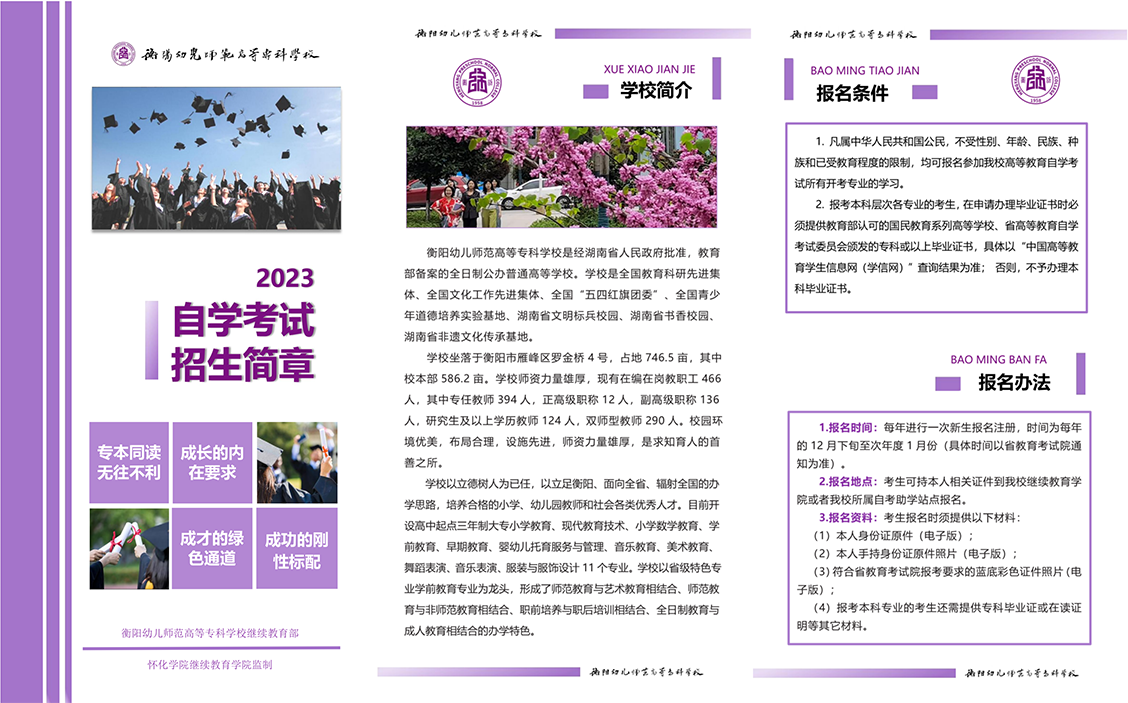 衡陽幼兒師范高等??茖W(xué)校2023年高等教育自學(xué)考試招生簡章