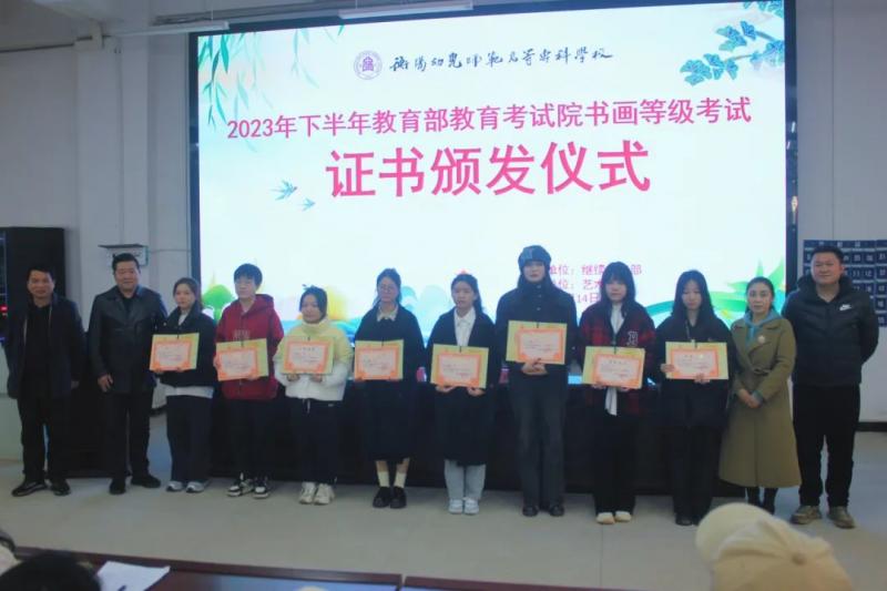 3月14日,衡陽幼兒師范高等??茖W校于學前大樓階梯五教室舉行了2023年下半年教育部教育考試院書畫等級考試證書頒發(fā)儀式,學校繼續(xù)教育部、藝術系教育管理工作人員、部分書畫老師和書畫等級考試考生出席了本次頒獎儀式。