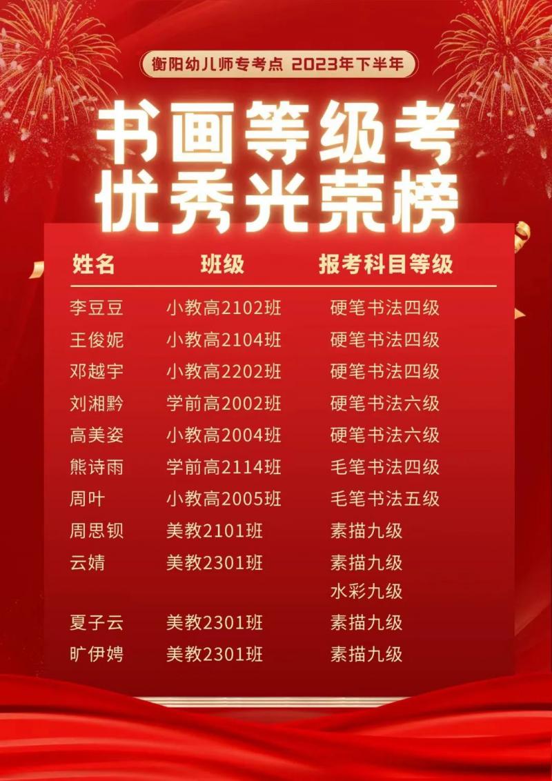 2023年下半年書畫等級考衡陽幼師考點通過名單