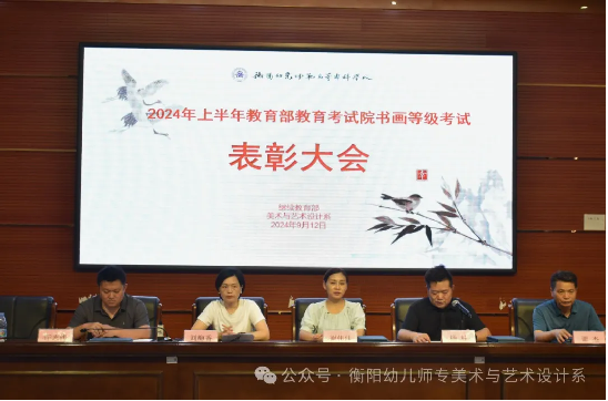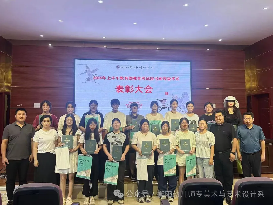 2024年9月12日中午12:30,衡陽幼兒師范高等??茖W校書畫等級考試頒證儀式在小教樓一樓報告廳隆重舉行。本次儀式由衡陽幼兒師專繼續(xù)教育部主辦,美術與藝術設計系協辦。在這個充滿墨香與色彩交織的美好時刻,我們攜手踏入了藝術與夢想交相輝映的殿堂,共同見證了一場關于筆墨、關于堅持、關于榮耀的盛宴——衡陽幼兒師?!綜CPT中國書畫等級考試頒證儀式】的精彩呈現!