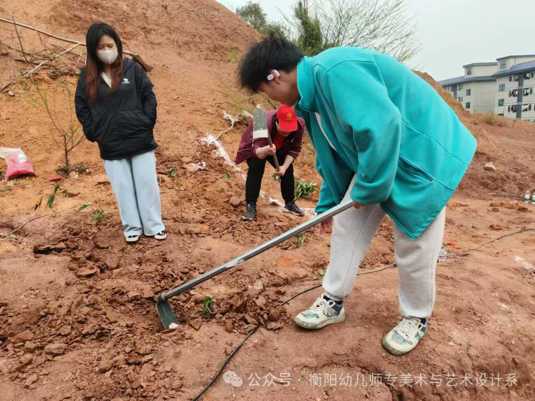 為深化"三全育人"綜合改革,3月26日,衡陽幼兒師范高等專科學(xué)校美術(shù)與藝術(shù)設(shè)計(jì)系創(chuàng)新實(shí)施"黨建+美育+勞育"融合育人模式,教師黨支部聯(lián)合學(xué)生黨支部在大禮堂后山開展"藝術(shù)林"共建活動(dòng)。師生以新綠植為畫布,將植樹節(jié)轉(zhuǎn)化為生動(dòng)的跨學(xué)科實(shí)踐課堂,讓生態(tài)文明理念在藝術(shù)創(chuàng)作中生根發(fā)芽。