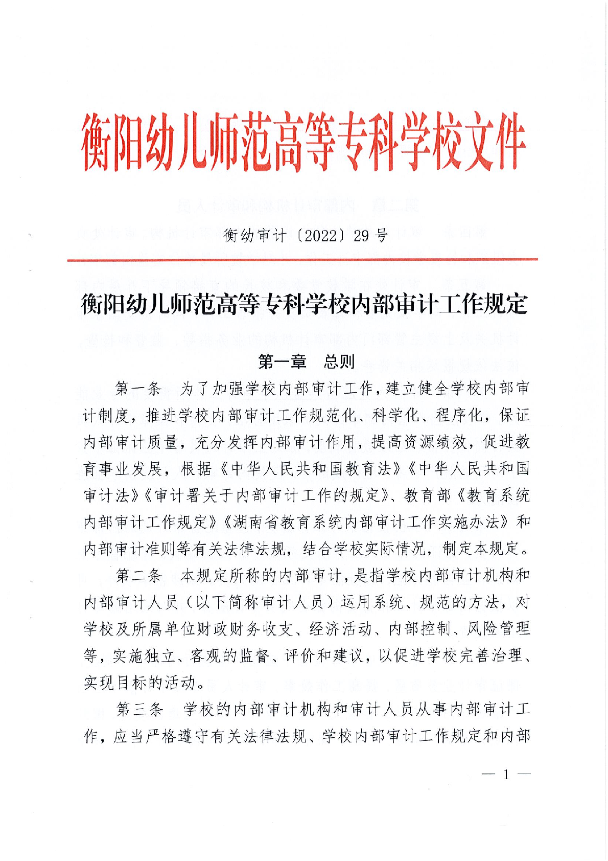 衡陽(yáng)幼兒師范高等??茖W(xué)校內(nèi)部審計(jì)工作規(guī)定
