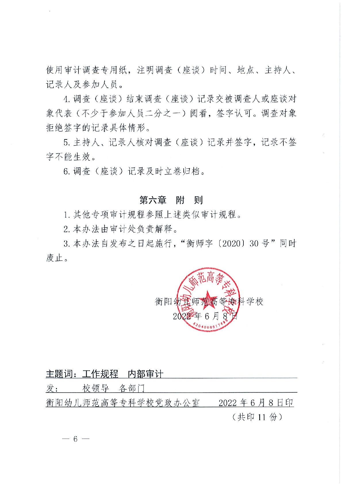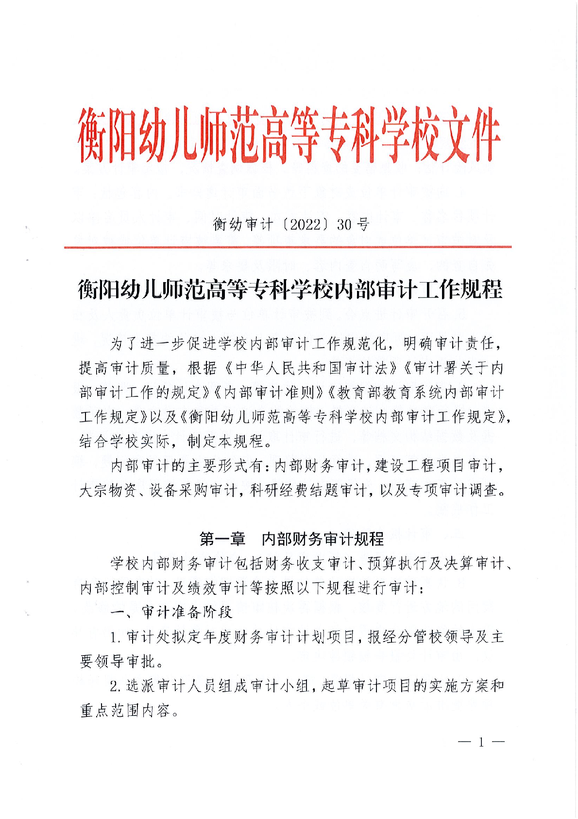 衡陽幼兒師范高等專科學(xué)校內(nèi)部審計(jì)工作規(guī)程