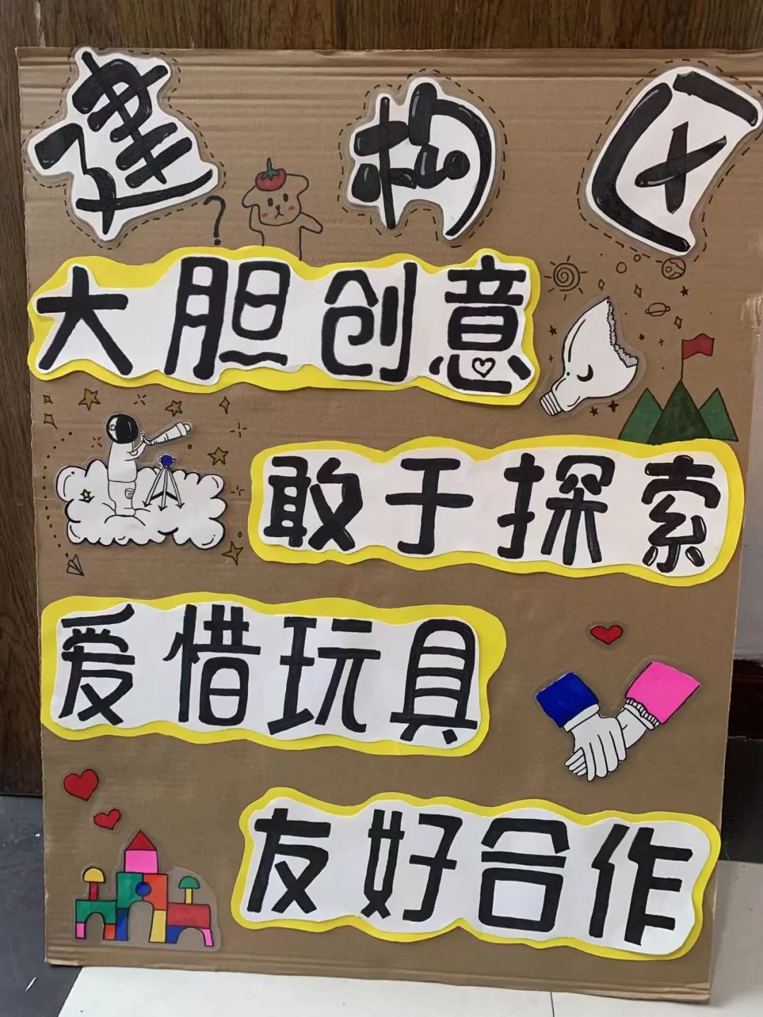 志愿者們來到幼兒園,首先從分區(qū)規(guī)劃、區(qū)域設(shè)置、材料投放、作品呈現(xiàn)、建構(gòu)等方面與帶隊老師進(jìn)行了深入探討,商議方案,然后在老師們的指導(dǎo)下開展創(chuàng)設(shè)布置。志愿者們認(rèn)真的涂畫、裁剪,關(guān)注著每一個小小的細(xì)節(jié),在她們的努力下,建構(gòu)區(qū)也在慢慢變得溫馨和美麗起來,幼兒園面貌煥然一新。