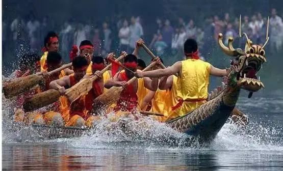 賽龍舟是端午節(jié)的主要習(xí)俗。相傳起源于古時(shí),楚國人因舍不得賢臣屈原投江死去,許多人劃船追趕拯救。他們爭先恐后,追至洞庭湖不見蹤跡。之后每年五月五日劃龍舟以紀(jì)念之。人們借劃龍舟驅(qū)散江中之魚,以免吃掉屈原的身體。競渡之習(xí),盛行于吳、越、楚。