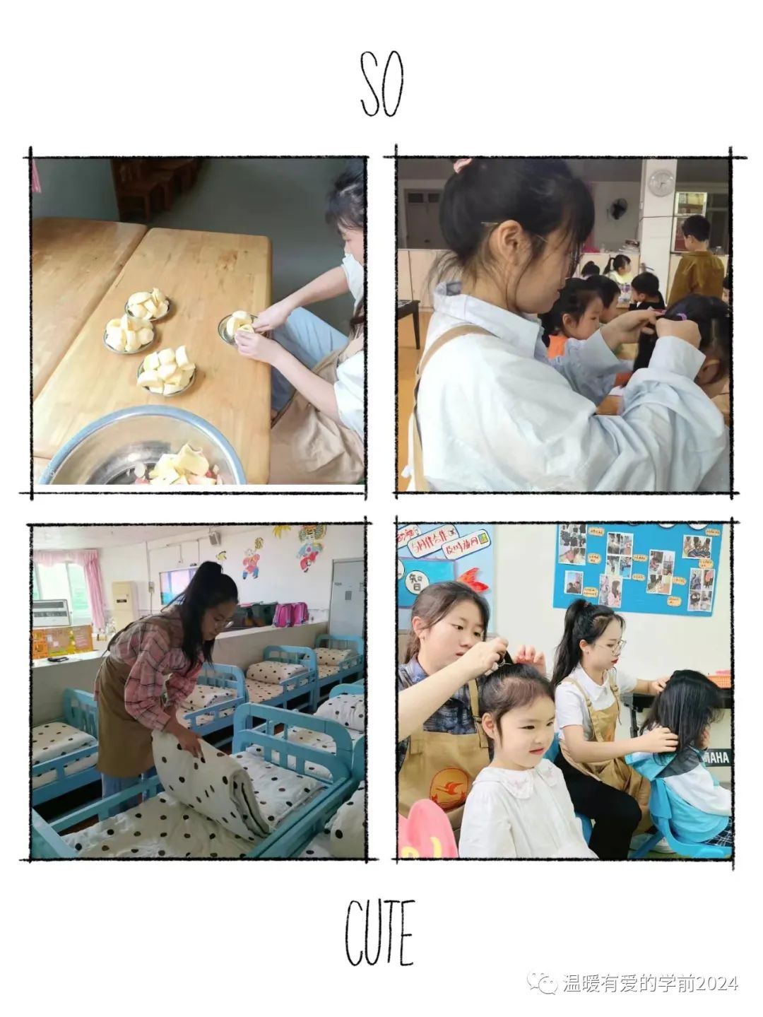 早上我們會接待小朋友們?nèi)雸@,引導(dǎo)他們搬凳子坐好,進(jìn)行桌面游戲。早餐時間,保育老師會帶我們一起為小朋友們?nèi)〔汀⒎植?,并指?dǎo)他們安靜就餐。早餐過后,小朋友們的教學(xué)活動就正式開始了,另外,小朋友們每天都會有早操,早操結(jié)束會有游戲活動,包括室內(nèi)室外,結(jié)束后喝水、盥洗等,吃完中餐后會安靜活動或者戶外散步,午睡過后吃午點(diǎn),并安靜等待老師開展區(qū)域活動,最后送他們離園。