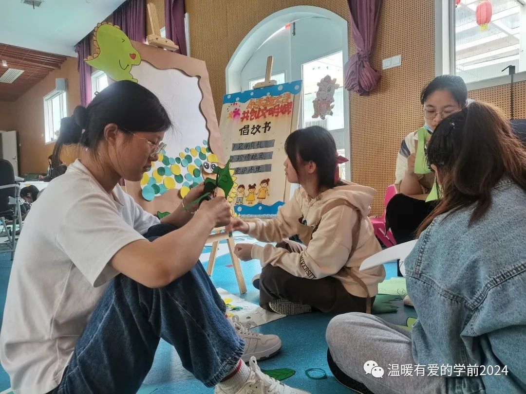 在得到老師們同意之后,我們的見習(xí)小老師給小朋友們帶來了許多生動有趣的活動,通過開展這些活動,我們將學(xué)到的理論知識聯(lián)系到實(shí)踐中來,也讓我們更直觀地感受到有生課堂與無生課堂的區(qū)別,能更好地反思自己的不足之處。