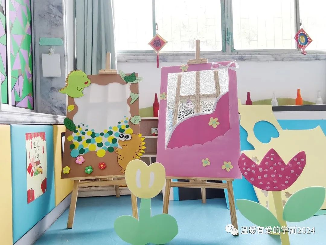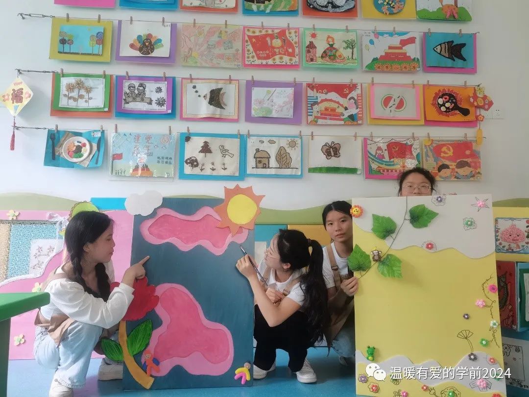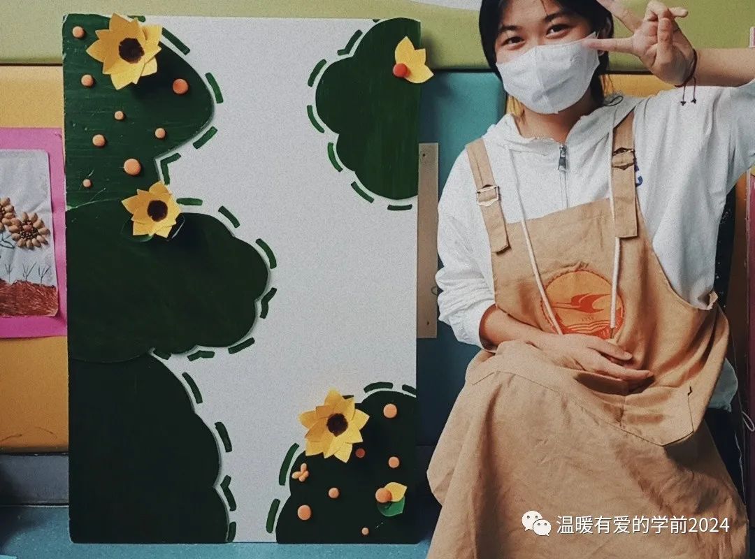 我們的環(huán)創(chuàng)作品色彩豐富,且十分符合小朋友們的童心,其中一幅環(huán)創(chuàng)作品中有一個可愛的獅子頭,一只小青蛙,還有一只小猴子;另一幅環(huán)創(chuàng)作品我們總共用了三層的KT板,并且有色彩層次的變化,圖片上有鮮花、云朵、太陽、還有幾個小人。第一次將所學(xué)運(yùn)用于實(shí)踐,讓我們覺得之前在學(xué)校的那些辛苦都是值得的,因?yàn)橛性谡J(rèn)真學(xué)習(xí)如何做環(huán)創(chuàng),所以當(dāng)接到這個任務(wù)時也是能夠得心應(yīng)手的完成。對于這次的作品我們覺得還有進(jìn)步的空間,在往后的學(xué)習(xí)生活中我們一定更加注重這方面的學(xué)習(xí)?!?,趙雅潔,李心淋,周婷