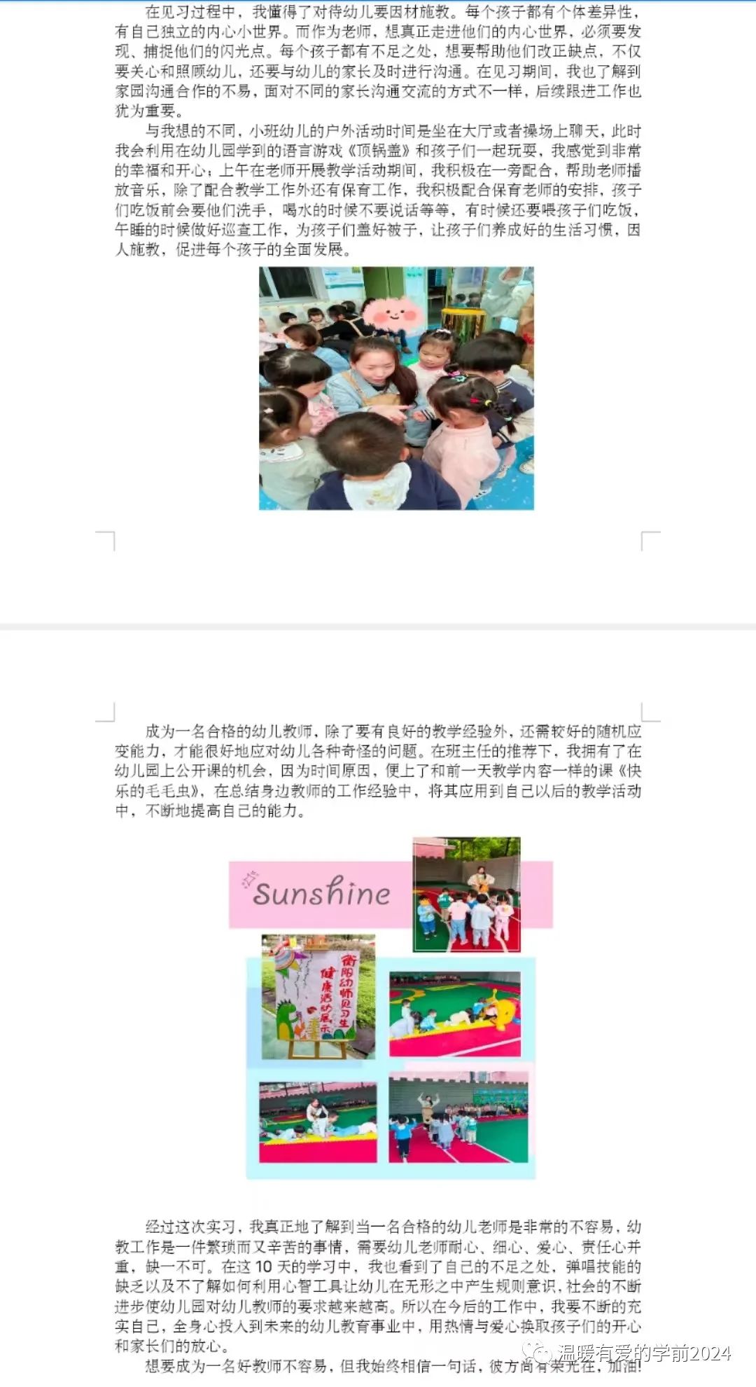 雖然兩周見習(xí)時光已經(jīng)結(jié)束,但學(xué)習(xí)從未止步,這里是我們幼兒教育生涯開啟的某一站。在這一站中我們真正地了解到幼教工作是一件繁瑣而又辛苦的事情,需要幼兒老師耐心、細(xì)心、愛心、責(zé)任心并重,缺一不可。