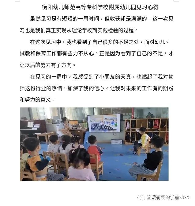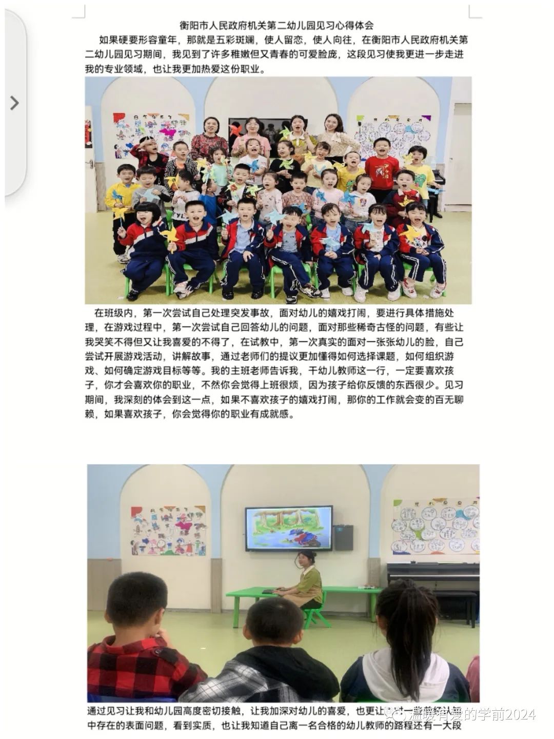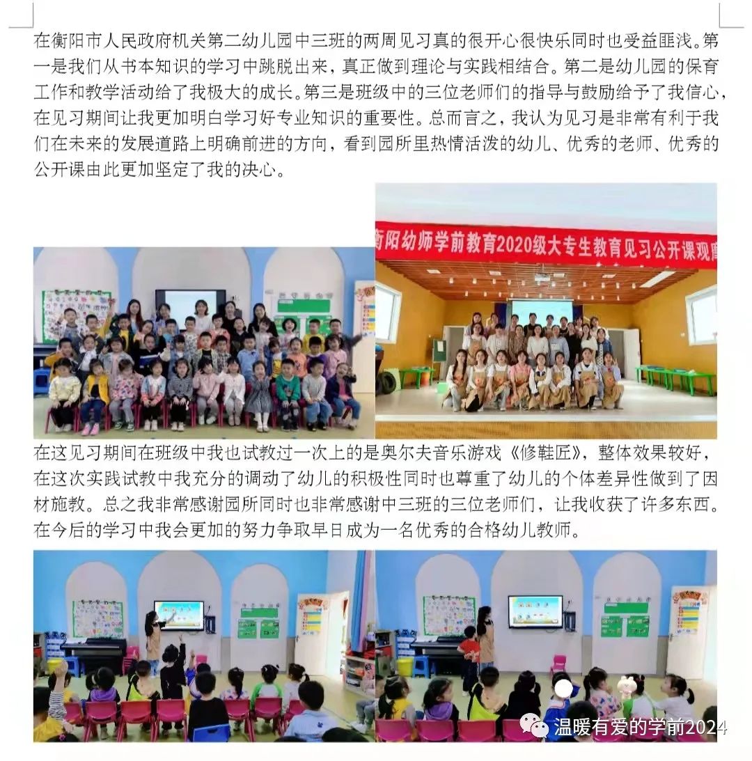 帶著對未來的憧憬和希望,衡陽幼師學(xué)前教育2024班的同學(xué)們來到了衡陽市人民政府機(jī)關(guān)第二幼兒園和衡陽市蒸湘區(qū)英豪幼兒園以及衡陽幼師附屬幼兒園,開啟了為期兩周的見習(xí)活動。