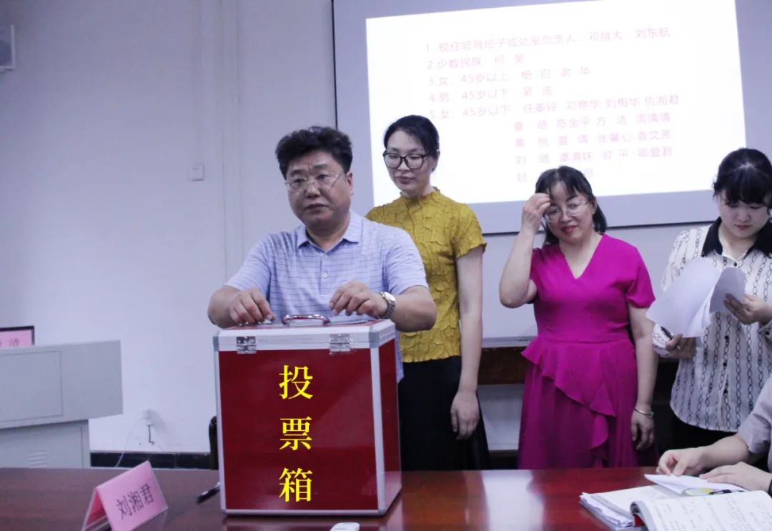 隨后,全體黨員采用無記名方式進(jìn)行全額推薦投票,經(jīng)過統(tǒng)票,鄧昌大、鄧艷華、方潔、劉東航、劉璐、劉梅華、任姜鈴、何昊、吳迪、陳金平、楊白、張馨心、袁文芳、卿愛君、曹蓓(按姓氏筆畫排序)等15位同志確定為教學(xué)第一黨支部參加學(xué)校第一次黨代會(huì)代表候選人推薦人選。