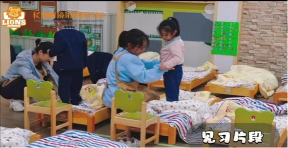 協(xié)助小朋友起床的曉雨老師和慧慧老師
