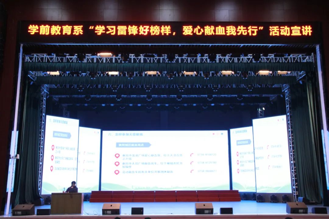 今年3月5日是毛澤東等老一輩革命家為雷鋒同志題詞60周年,為進(jìn)一步傳承雷鋒精神,樹立時代新風(fēng),發(fā)揚大學(xué)生愛心奉獻(xiàn)精神。3月1日,學(xué)前教育系在大禮堂舉行了無償獻(xiàn)血知識宣講。本次宣講邀請了衡陽市中心血站陳敏老師到現(xiàn)場為同學(xué)們講解無償獻(xiàn)血知識。