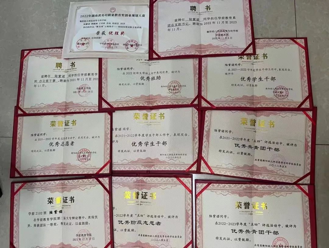2022年9月被評(píng)為2021——2022學(xué)年度“優(yōu)秀學(xué)生干部”