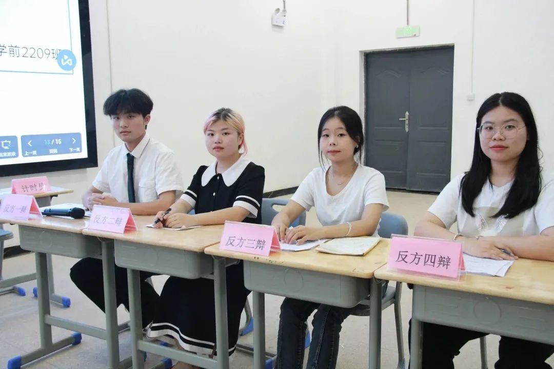 為深入貫徹學(xué)習(xí)黨的二十大精神,貫徹落實(shí)學(xué)?!叭L(fēng)建設(shè)”專項(xiàng)整治工作,鍛煉同學(xué)們的語言組織表達(dá)能力和思辯能力,進(jìn)一步促進(jìn)學(xué)生德智體美勞全面發(fā)展。學(xué)前教育系于6月14日晚在C106教室開展了“學(xué)習(xí)二十大,思辯展風(fēng)采”第三屆辯論賽決賽。學(xué)前教育系黨總支書記鄧艷華、專職副書記馬奕斌、副主任鄒文姣、學(xué)生工作干事吳鵬及特邀評(píng)委曹文生老師擔(dān)任本次辯論賽評(píng)委。