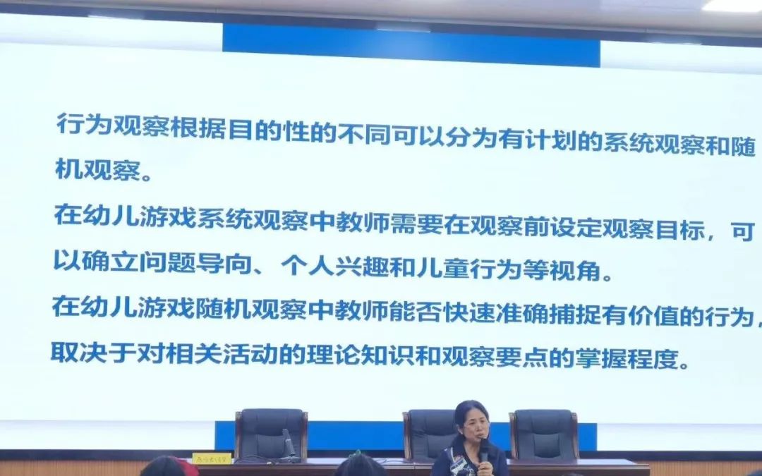 然后,康老師詳細(xì)闡述了幼兒園游戲觀察與記錄的策略。要求幼兒教師提高觀察意識,明確觀察目標(biāo);掌握觀察方法,做好觀察記錄;明確觀察要點,科學(xué)分析觀察結(jié)果。