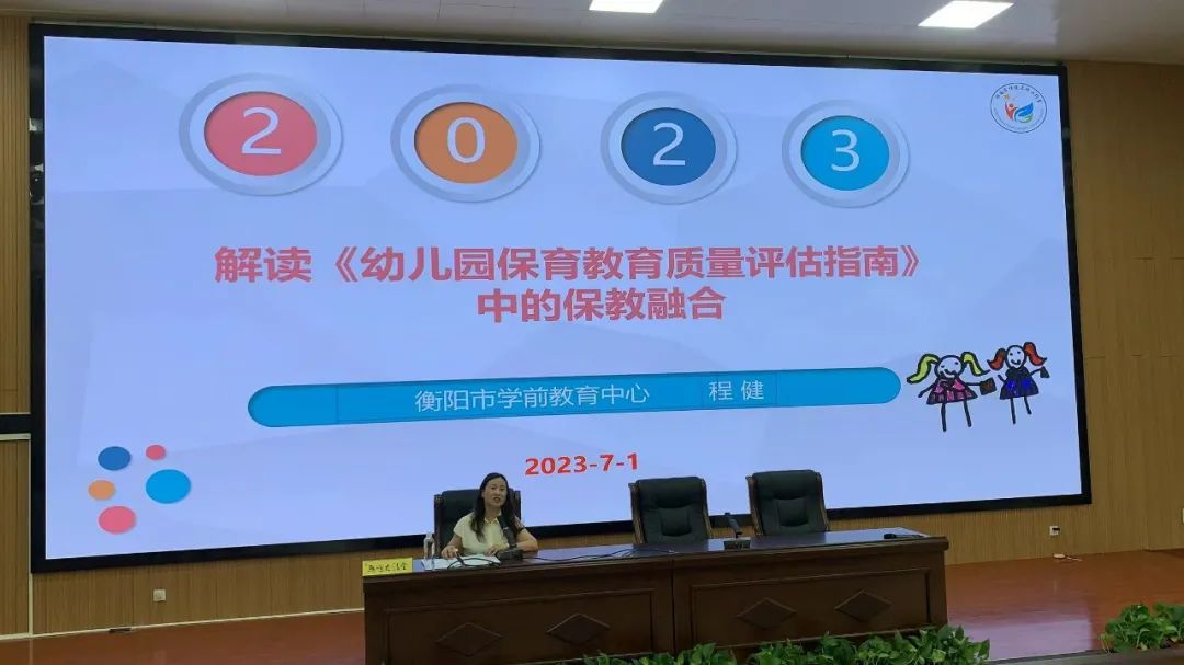 衡陽市學(xué)前教育中心副主任程健的講座題目為解讀《幼兒園保育教育質(zhì)量評估指南中的保教融合》。建設(shè)高質(zhì)量學(xué)前教育體系,離不開質(zhì)量評估指南的正確導(dǎo)向與科學(xué)指引。對“評什么”和“怎樣評”提出了明確指引,推動幼兒園建立科學(xué)的評估導(dǎo)向,落實科學(xué)保教實踐,引導(dǎo)教研為幼兒園實踐、教師專業(yè)成長服務(wù),全面提升幼兒園保教質(zhì)量具有重要意義。