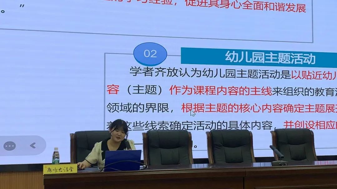 衡陽幼兒師范高等??茖W(xué)校學(xué)前教育系張樹麗老師的講座題目是《主題活動背景下的幼兒園園本課程建設(shè)與實施》。