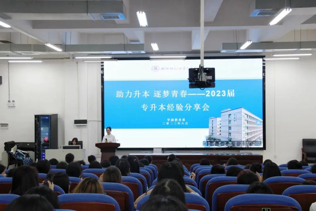 為進(jìn)一步促進(jìn)優(yōu)良學(xué)風(fēng),營(yíng)造良好的學(xué)習(xí)氛圍。幫助同學(xué)們對(duì)專升本考試有更充分的認(rèn)識(shí)和了解,做好未來(lái)的學(xué)習(xí)規(guī)劃和掌握備考技巧。6月24日晚,學(xué)前教育系特在階梯五教室舉行了“助力升本,逐夢(mèng)青春”——2023屆專升本經(jīng)驗(yàn)分享會(huì)。本次分享會(huì)邀請(qǐng)了來(lái)自不同升本學(xué)校的優(yōu)秀學(xué)生代表,學(xué)前教育系黨總支書(shū)記鄧艷華、專職副書(shū)記馬奕斌、各班輔導(dǎo)員和學(xué)生代表參加此次會(huì)議。