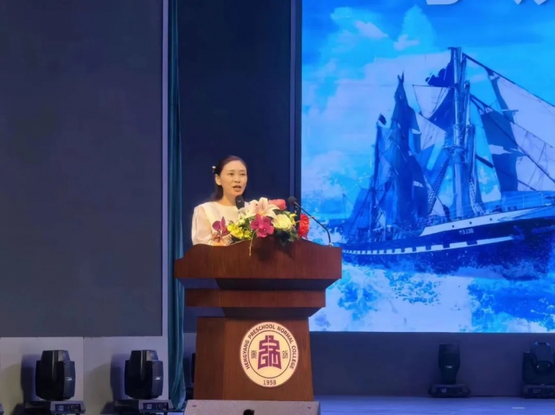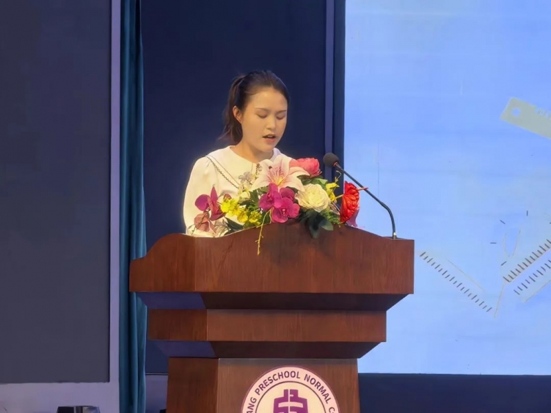 ?后由新生周雁飛代表發(fā)言,她講了學前教育的重要性,提出我們對待他人要有愛心,對待學生要因材施教,要用最鮮活的靈魂迎接新生活,開闊屬于我們的新天地,一起加油奮斗。