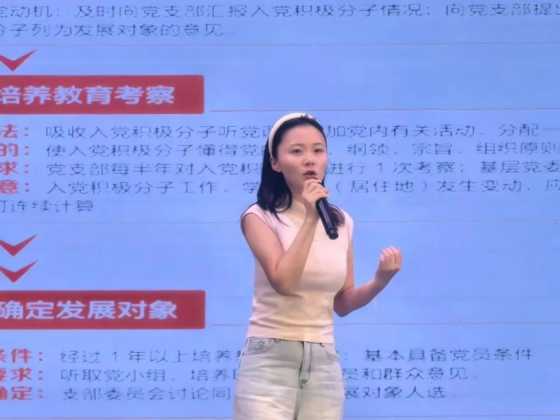 ?最后陳琴老師對于入黨進行了黨員發(fā)展流程培訓,就發(fā)展黨員的總要求以及發(fā)展黨員的基本程序和常見問題、主要材料的書寫要求和注意事項進行了相關介紹,并且強調了入黨的重要性,鼓勵我們積極入黨。