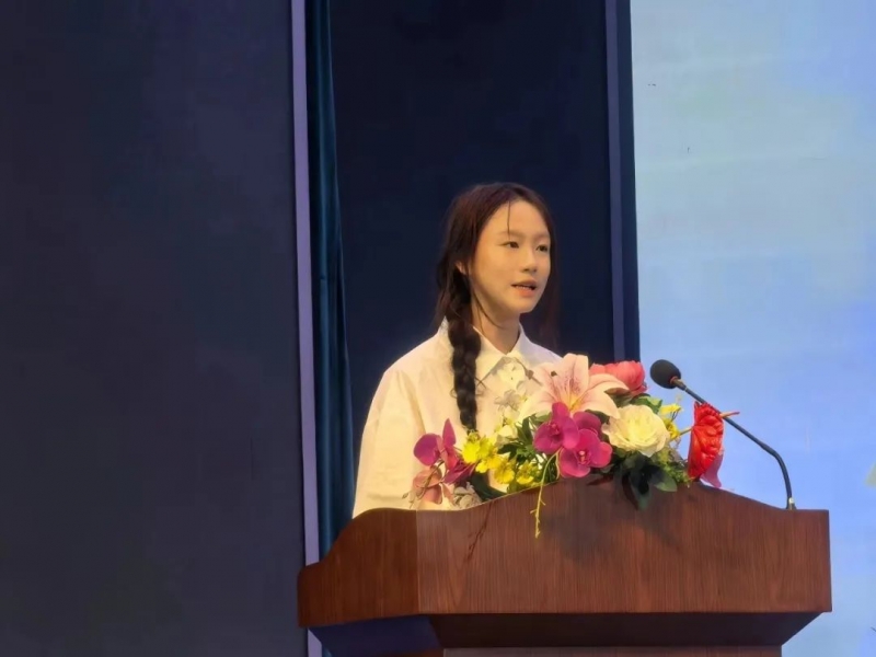 老生代表王思淼感謝了老師們的辛勤付出與指導并分享了自己的讀書心得,激勵新生要對未來做好規(guī)劃,參加各種優(yōu)秀的社團活動,合理安排時間,注重自身身體和心理健康。在最后她祝所有人都能書寫自己的美好華章。