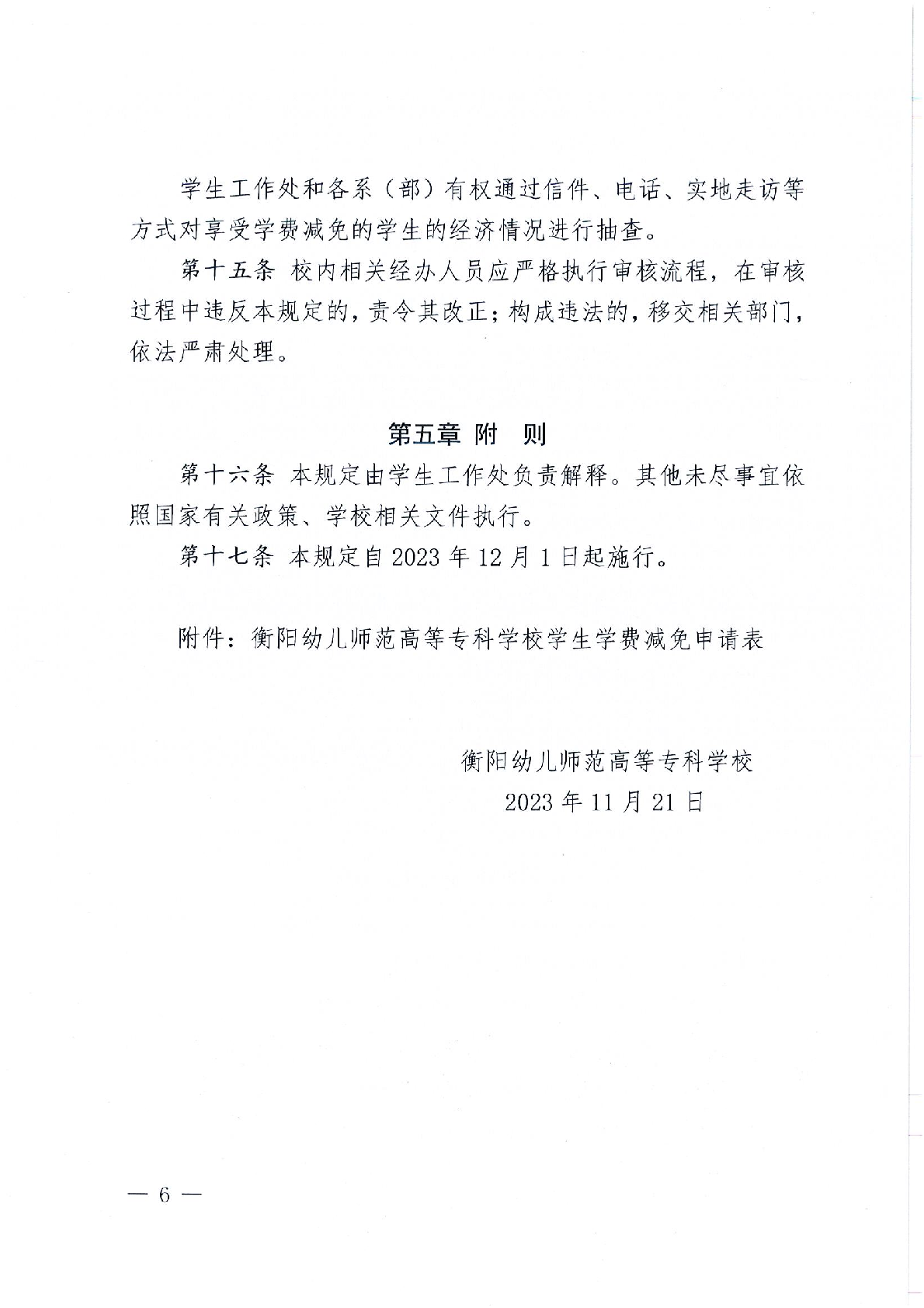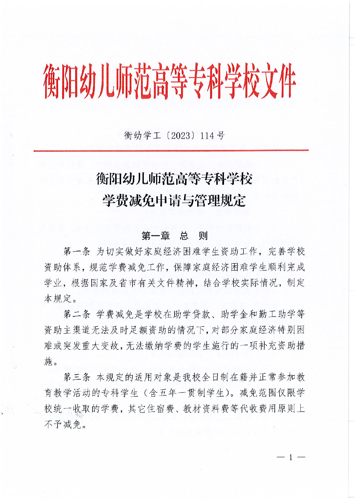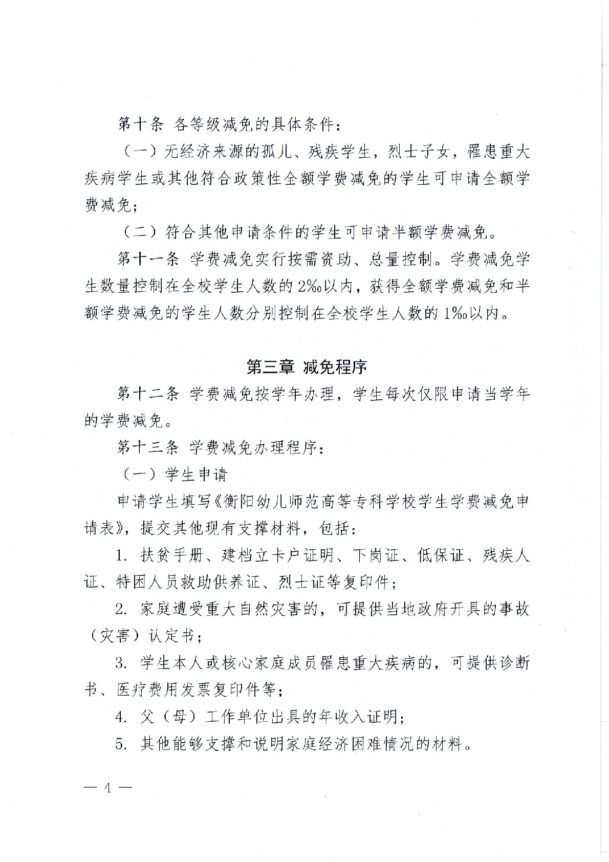衡陽幼兒師范高等專科學校學費減免申請與管理規(guī)定