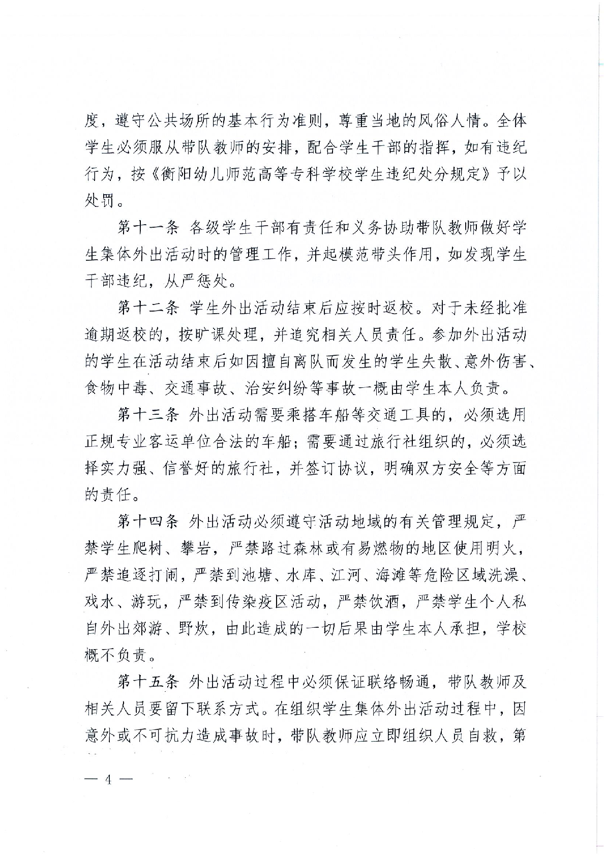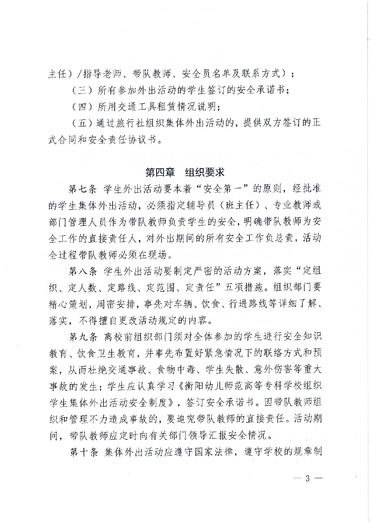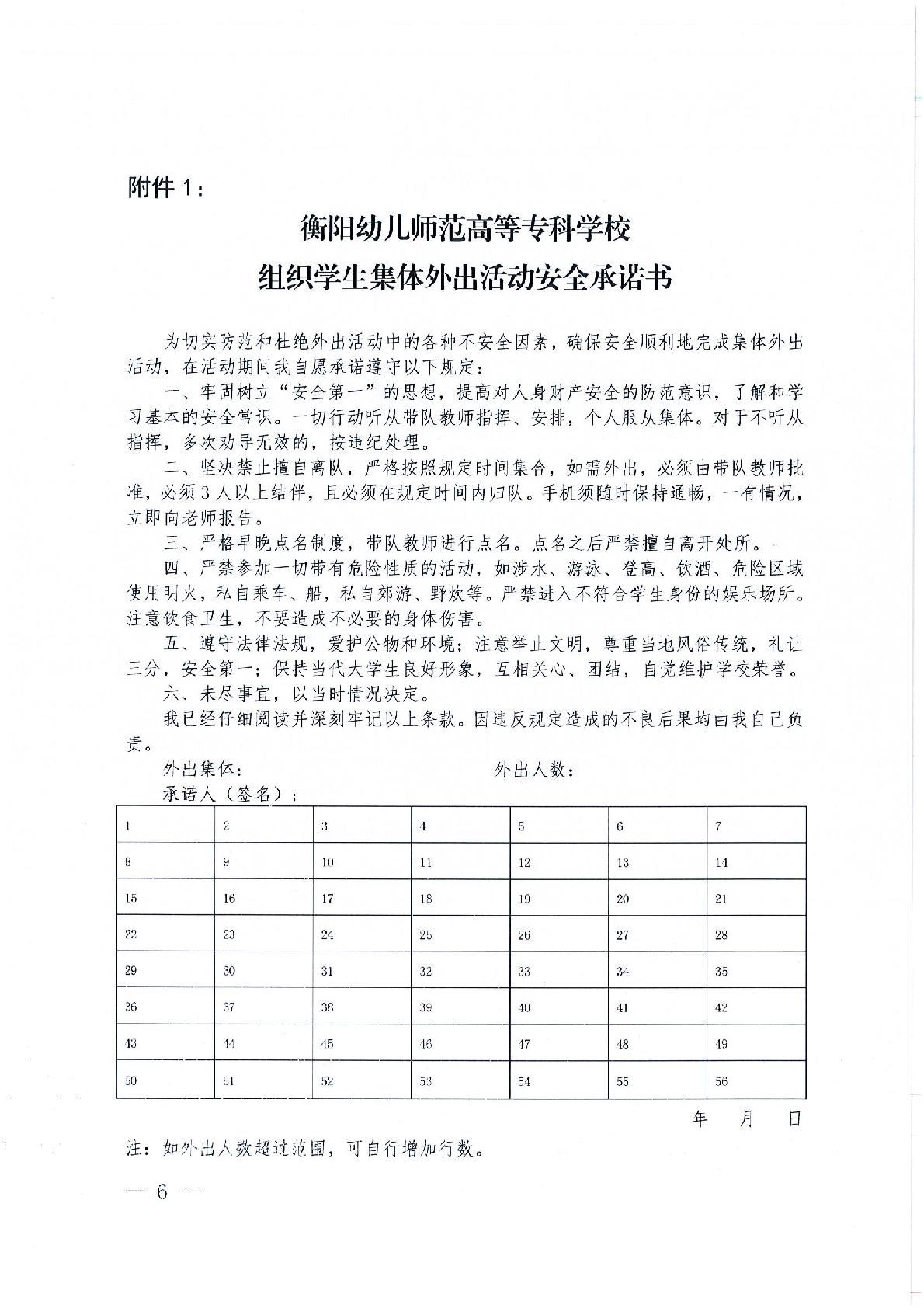 衡陽幼兒師范高等??茖W校組織學生集體外出活動安全制度