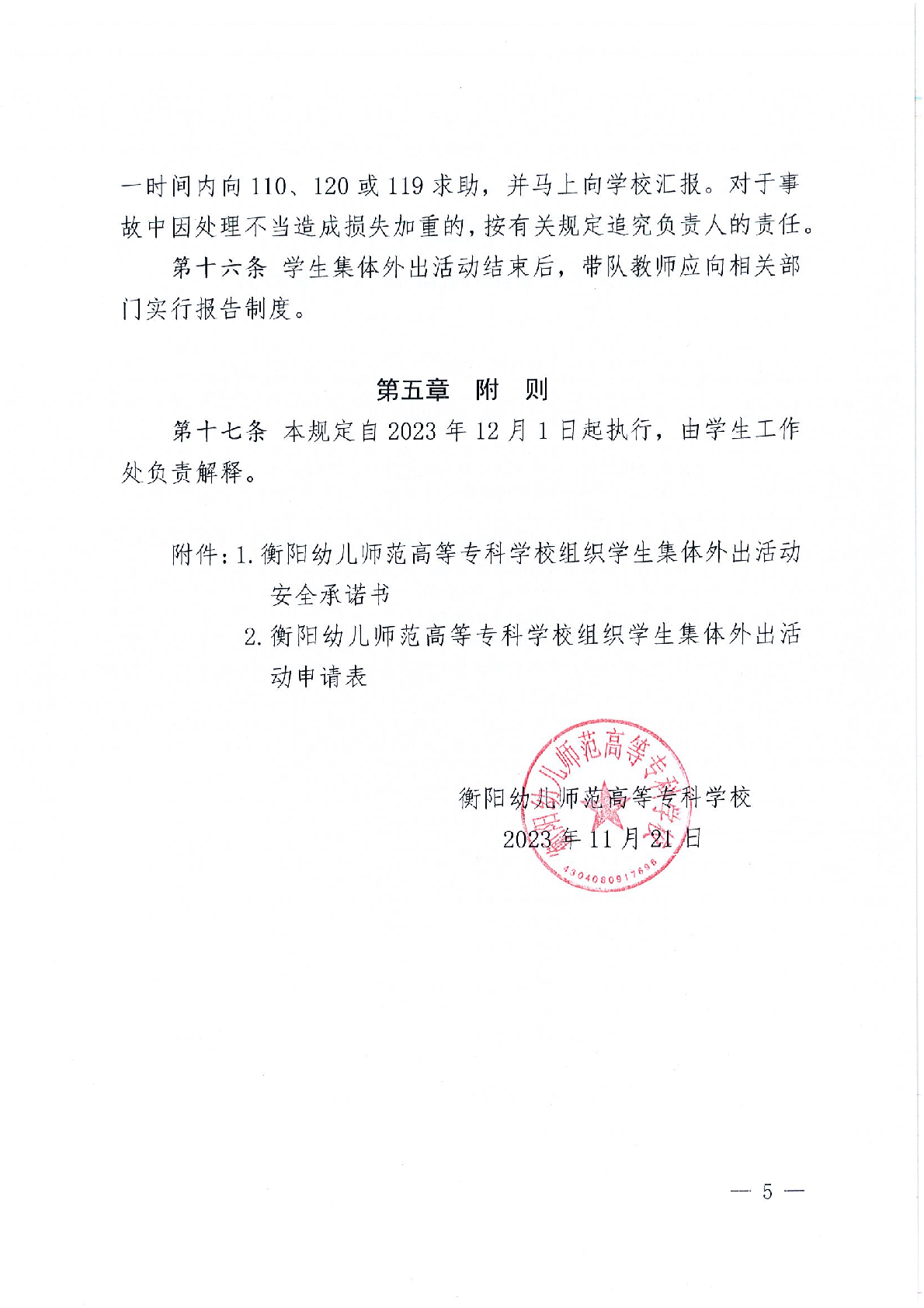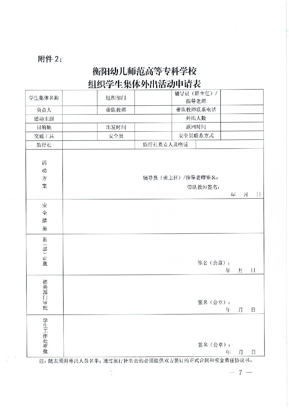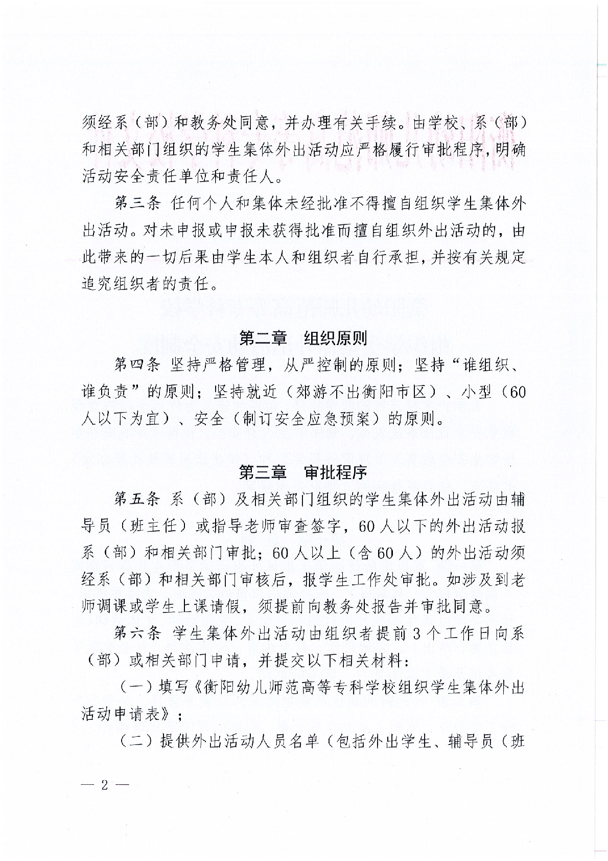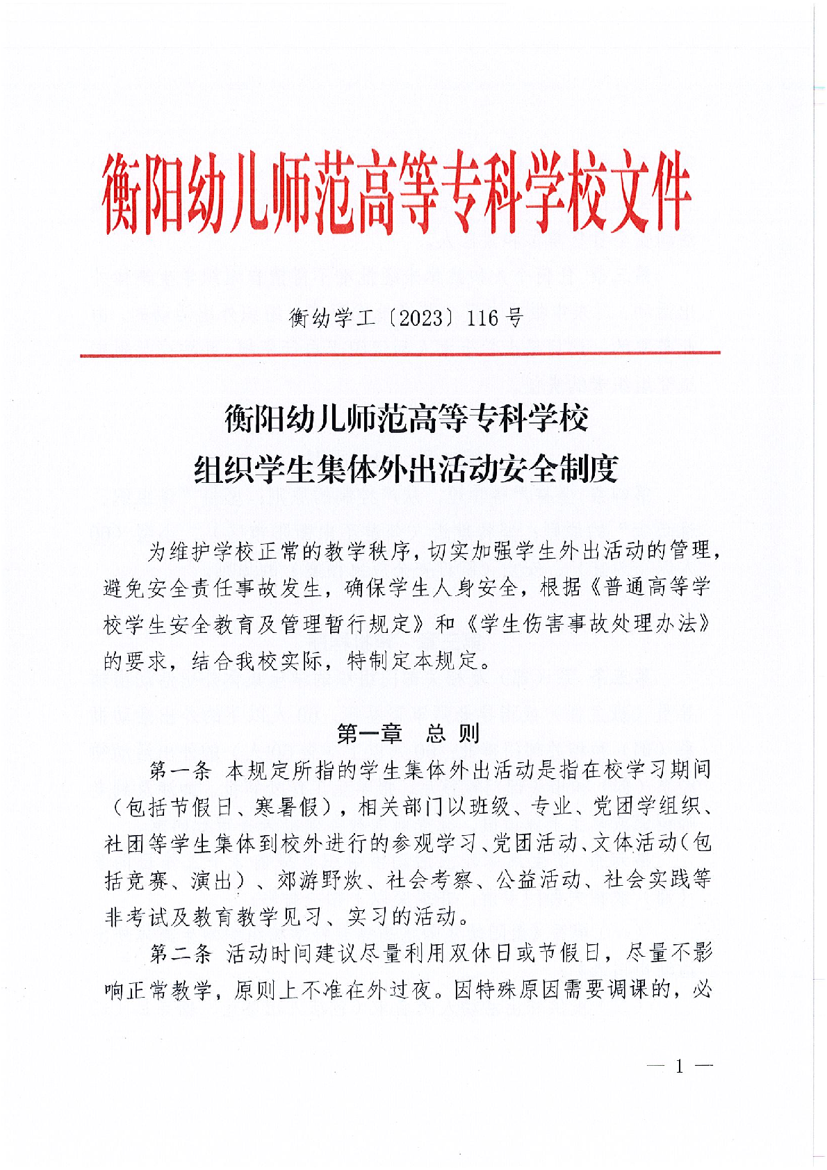衡陽幼兒師范高等??茖W校組織學生集體外出活動安全制度