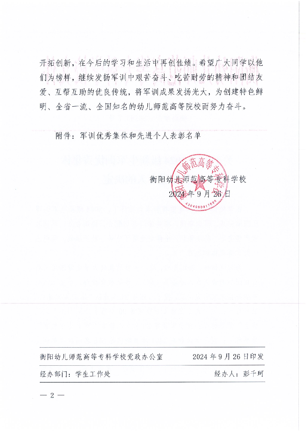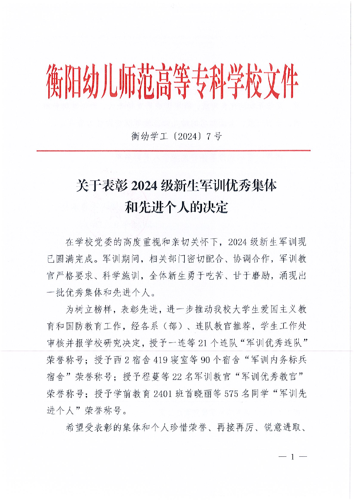 關(guān)于表彰2024級新生軍訓(xùn)優(yōu)秀集體和先進(jìn)個(gè)人的決定