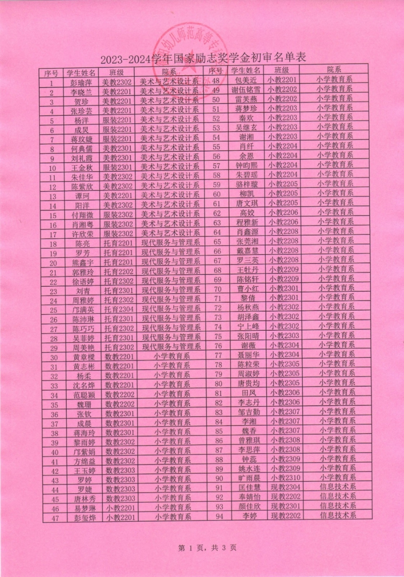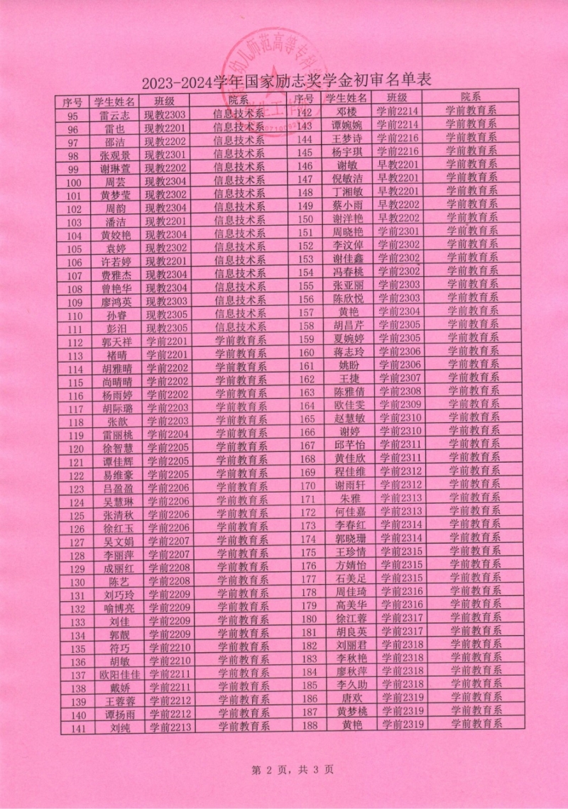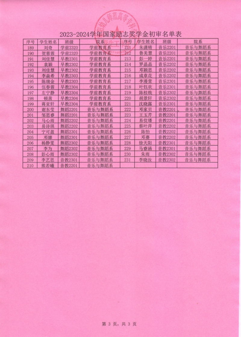 2023-2024學(xué)年國(guó)家勵(lì)志獎(jiǎng)學(xué)金評(píng)選結(jié)果公示(衡陽(yáng)幼兒師范高等專(zhuān)科學(xué)校)