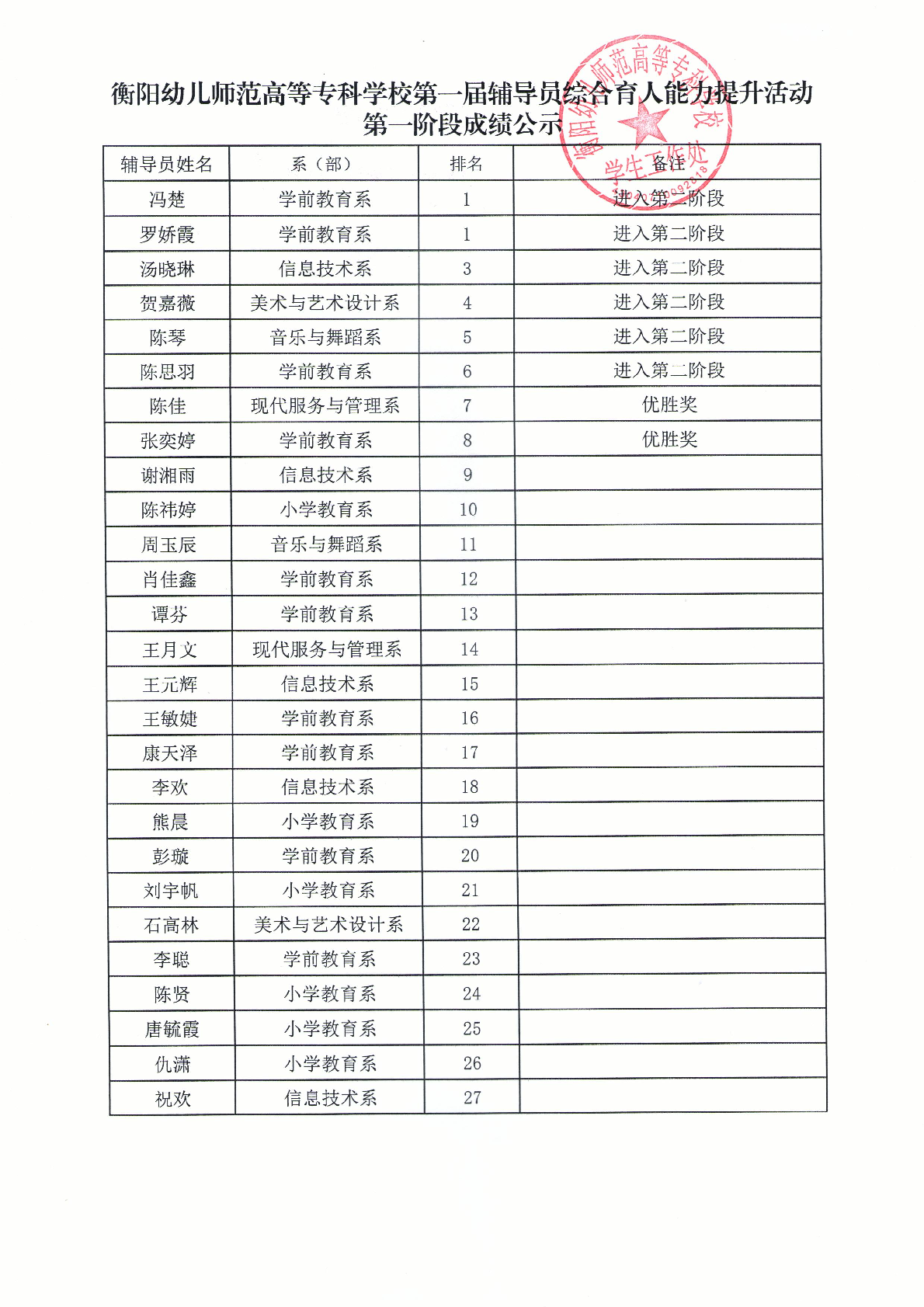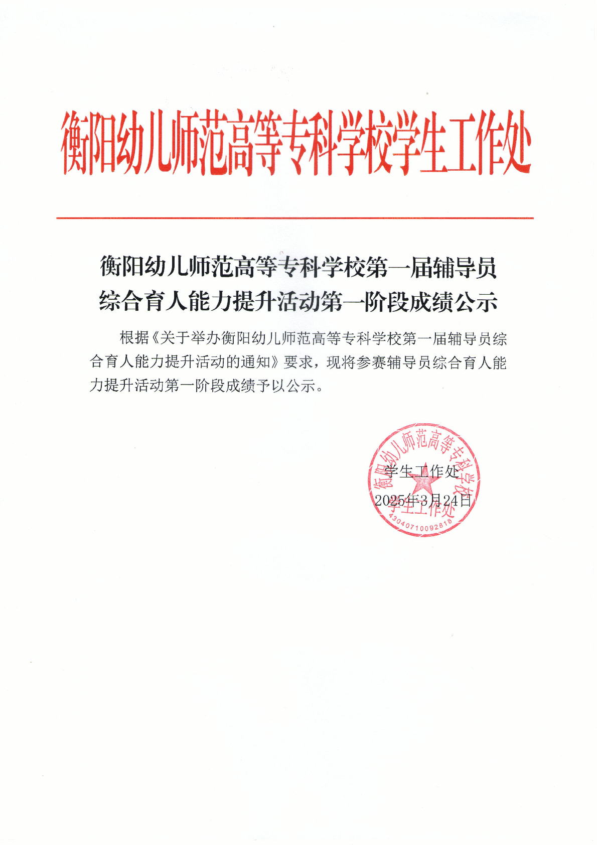 衡陽幼兒師范高等專科學校第一屆輔導(dǎo)員綜合育人能力提升活動第一階段成績公示